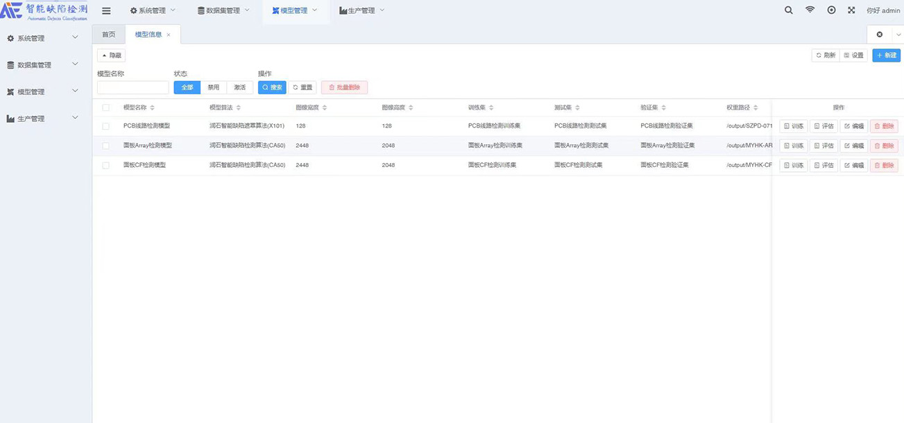 1.提供圖像前處理工具,可用以濾除雜訊及強(qiáng)化瑕疵 2.提供多種圖像擴(kuò)增方法 3.提供模型訓(xùn)練、模型管理與模型部屬模塊,企業(yè)可依自行進(jìn)行模型強(qiáng)化訓(xùn)練,以適應(yīng)新產(chǎn)品,并將新模型部屬至AI檢測設(shè)備上 4.支持復(fù)判功能,可重新標(biāo)定圖像類別 5.支持報表製作功能,便于使用者統(tǒng)計檢測結(jié)果及產(chǎn)製報表